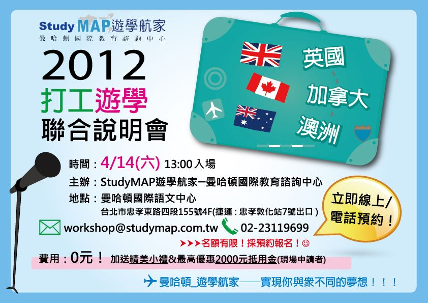 【2012打工遊學 英‧加‧澳 聯合說明會】